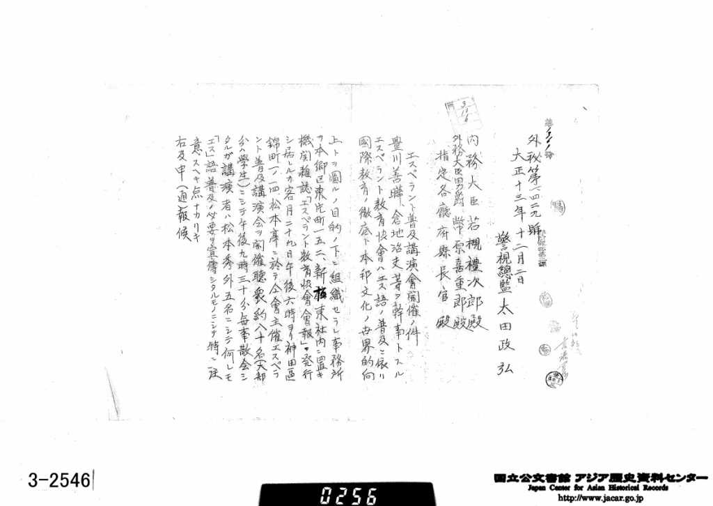 さらに興味を引くのは、教職のかたわらエスペラント語普及に励んだことだ。「日本エスペラント運動人名事典」(ひつじ書房)では中項目の扱いで、その名前も他よりも目立つようゴシック体で印字されている。1922年、日本エスペラント学会を発展させて「財団法人エスペラント同人社」を設立、豊川が企画した東北北海道宣伝旅行隊を成功させて注目を浴びた。母語の異なる人々が意思疎通を図るために考案されたエスペラント語はその「無国籍性」や「国際主義」が、各国の全体主義的政府から弾圧・迫害されていた。豊川の講習会には警官も紛れ込み、その状況を記述した内務大臣ら宛の報告書が国立公文書館に現存している点をみても、かなりマークされていたことがわかる。